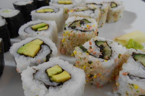 You can add toppings to the sushi roll as well, like spicy sirrachi mayo, wasabi, are popular.